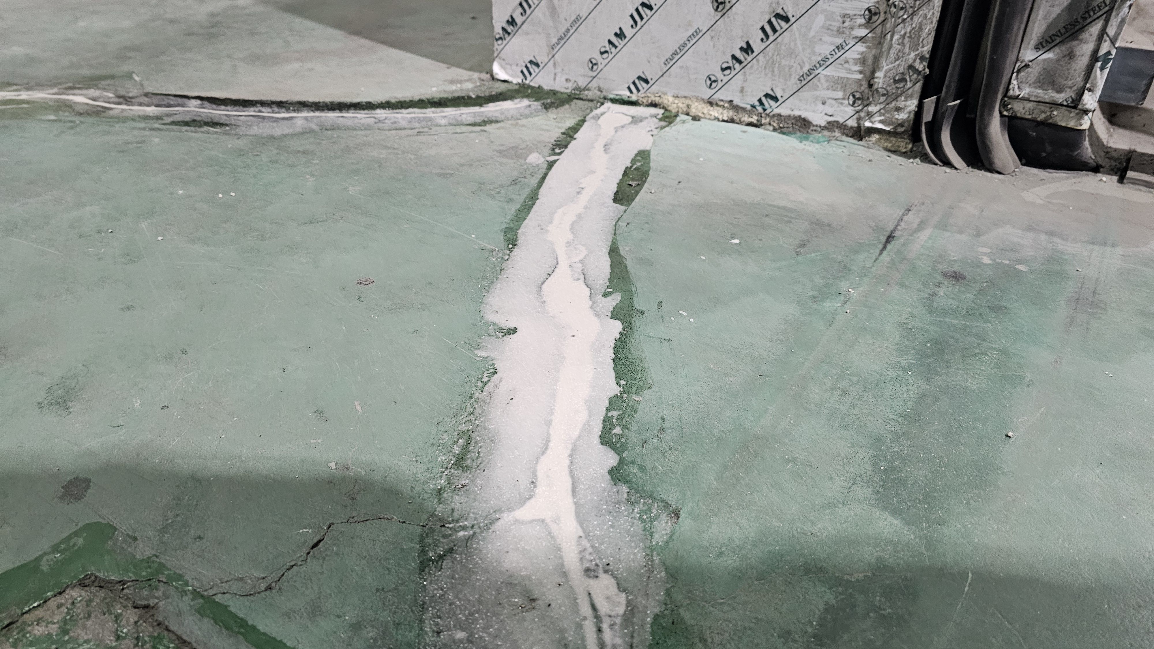 균열 보강 → 연마 → 프라이머 → Degafloor 시공까지 당일 완료